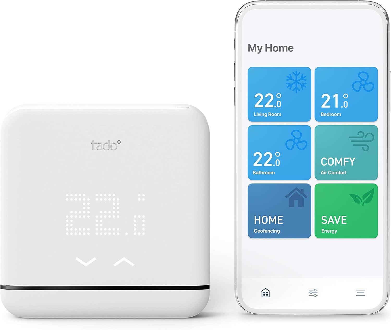 Un salón pre-enfriado cuando regreses y la temperatura perfecta en la habitación para una excelente noche de sueño. Optimiza tu climatización y aire acondicionado según tus necesidades mientras ahorras energía y en tu factura energética. Sin importar dónde estés, en casa o de camino, la aplicación móvil Tado te permite controlar tu aire acondicionado en cualquier momento, desde cualquier lugar.