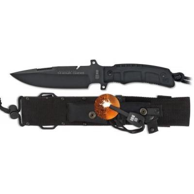Cuchillo táctico Rui hoja mango SFL Rubber Coated y hoja Acero Inox Titanium Coated de 16 cm Incluye funda nylon y Pedernal 31830