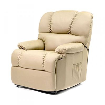 Sillón Relax Deluxe Masaje Elevador, Reclinable Eléctrico Calor Lumbar, Polipiel De Máxima Calidad (Beige)