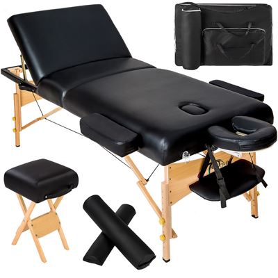 Camilla para masajes 3-zonas con acolchado de 10cm + cojines rollo + taburete + bolsa, Negro