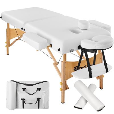 Camilla para masajes bi-zona con acolchado de 7, 5cm + cojines rollos + bolsa, Blanco