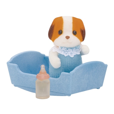 Sylvanian Families Bebé perro chifón Sylvanian Families Set de 1 figura de Bebé Perro Chifón con su cuna, biberón y su ropa característica.