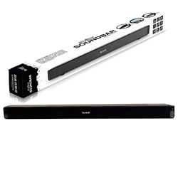 【Amplia compatibilidad】: Con dos conectores de audio de 3.5 mm y Bluetooh, es perfecta para que puedas conectar tu ordenador, portátil, TV, teléfono móvil, tablet, MP3, MP4. Además dispone de soportes traseros para fijación en la pared.. 【Potente Barra de Sonido de 2.0 con Mando IR】: Sonido Surround, altavoces con una potencia de 28w para un sonido multidimensional de alto rendimiento y un óptimo sonido envolvente de graves profundos, le permiten disfrutar de cine de alta calidad. Con Alimentación DC 12v para que la fiesta no pare nunca.. 【Conexiones Múltiples y Bluetooth】: Bluetooth, dos entradas AUX y 1 jack de 3,5mm. Ofrece un amplio rango de conexión inalámbrica. La barra de sonido soporta la conexión con dos conectores jack 3,5mm para conectarlo a tu televisor y teléfono o Tablet a la misma vez.. 【Material Premium y diseño elegante】: Material de alta calidad, duradero para un uso prolongado y ligero. Combina con tu magnifico televisor en tu salón o habitación.. 【Mando a distancia IR y Manual en Español】: El mando a distancia te permite tener todo el poder y control de la barra de sonido desde tu Sofá, tu comodidad ante todo. Y recuerda que tienes 2 años de garantía y Manual de instrucciones en español.