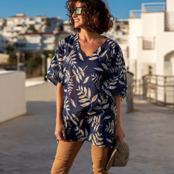 Este caftán es fresco, ligero y elegante, perfecto para ponértelo por encima del bikini o combinándolo con unos tejanos al atardecer.