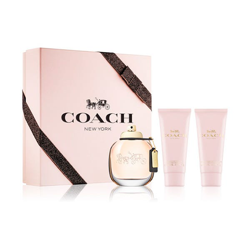 Cofre Coach El Cofre Coach contiene un frasco de fragancia, un gel de ducha y una crema hidratante. Combina los tres productos para mantener un aroma delicioso que te durará todo el día sin importar cuántas actividades realices. Notas aromáticas: Grupo olfativo: dulce Salida: pera y pimienta rosa Corazón: ciclamen y gardenia Fondo: cachemira y sándalo ¡Luce un aroma fresco e intenso!