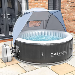 MANTÉNGASE RELAJADO Y PROTEGIDO: el dosel del refugio de la bañera de hidromasaje le permite relajarse y permanecer protegido de los elementos. La capota es adecuada para el CosySpa de 2/4 plazas o 4/6 plazas.. PROTECCIÓN CONTRA LAS QUEMADURAS SOLAR - Reduce el riesgo de quemaduras solares gracias a la sombra que proporciona la protección solar para bañeras de hidromasaje. Puede permanecer seguro y relajado.. FÁCIL DE ENSAMBLAR: el dosel envolvente de la bañera de hidromasaje es rápido y fácil de ensamblar junto con los postes de fibra de vidrio provistos. Simplemente coloque el clip en las hebillas de la bañera de hidromasaje.. CONSTRUCCIÓN DURADERA E IMPERMEABLE: fabricado con poliéster 190T, el dosel inflable para bañera de hidromasaje tiene un revestimiento de PU2000 mm para protección impermeable.. REFUGIO AL AIRE LIBRE CON VENTANAS DE MALLA: el dosel impermeable cuenta con ventanas de malla ventiladas de alta densidad para permitir que entre algo de luz en el área sombreada.