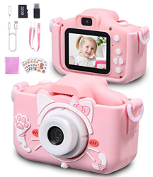 👧👦 Cámara HD: nuestra cámara para niños incluye una tarjeta SD de 32 GB y un lector de tarjetas. La pantalla de protección ocular IPS de 2,0 pulgadas de alta definición del dispositivo con cámara de este niño no afectará la vista de su hijo, puede tomar fotos y videos de 1080p, admite selfies y varios idiomas, y graba los momentos maravillosos de su hijo. Es un mini juguete de cámara perfecto para niños.. 👨🦱👩🦰Cámaras para niños versátiles: nuestras cámaras y videocámaras para niños tienen múltiples funciones, que incluyen toma de fotos, grabación de video, reproducción, juegos y más. La cámara de juguete para niños tiene 28 divertidos marcos de fotos, 4 filtros de color y 5 efectos de espejo, y puedes escuchar música para divertirte más.. 👨👩🦱Material ecológico: la cámara de este niño está hecha de material ecológico de alta calidad y viene con una funda de silicona a prueba de golpes de alta calidad, que es a prueba de caídas y antideslizante, duradera y Tiene una superficie muy cómoda al tacto. La cámara de este niño viene con una correa para el cuello duradera diseñada para que los niños quepan en sus manos pequeñas para facilitar su transporte.. 👶👸Carga universal USB: las cámaras y videocámaras de nuestros niños tienen una batería recargable de gran capacidad de 600 mAh incorporada, que se carga a través de un enchufe USB y admite el apagado automático de 1 minuto, lo que prolonga la vida útil de la batería. Pueden jugar durante mucho tiempo con dos horas de carga, lo que lo hace más divertido para los niños.. 🎁🎊Los mejores regalos y juguetes: cámara para niños con diseño de gato de dibujos animados y excelentes funciones adicionales para grabar o capturar los mejores momentos con sus hijos, apariencia linda y elegante, y una variedad de funciones útiles para ser imprescindible para niños y niñas mayores 3-12 Regalo ideal de cumpleaños, vacaciones, Navidad que los inspira a descubrir y absorber cosas buenas.