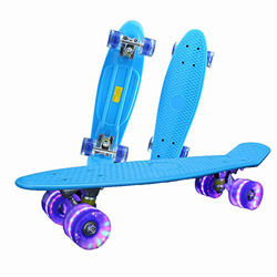 Precio de Rueda de iluminación LED completa Mini Cruiser de 22 pulgadas para niños, niñas, adolescentes/adultos, acabado de plástico para monopatín, azul para el Black Friday.