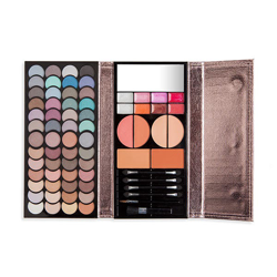 Cartera plegable de maquillaje de gran tamaño completa para un perfecto acabado.Contiene: 52 sombras de ojos. 2 bases de maquillaje 2 coloretes 2 iluminadores 4 paletas para los ojos 8 labiales 1 pincel labial 1 brocha para coloretes 1 espejoExisten varios modelos, te llegará aleatoriamente según existencias.