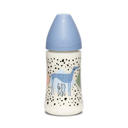 Compara los mejores precios de Suavinex Pret-a-porter Biberón +0 Meses con Tetina Redonda 3 Posiciones de Silicona, Azul (Perritos), 270 ml este Black Friday