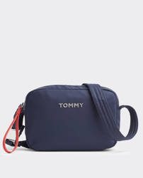 Tommy Hilfiger Bandolera pequeña de mujer Tommy Hilfiger de nylon en azul marino con cremallera Bandolera pequeña de nylon en color azul marino con aplique metálico Tommy y cierre de cremallera. Tiene asa larga con clip, tirador de asa corta y dispone de un bolsillo interior con cremallera.
