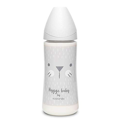Suavinex Biberón Premium Tetina Redonda de Silicona Flujo Denso 0% BPA, 360ml, Whiskers Gris