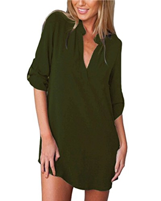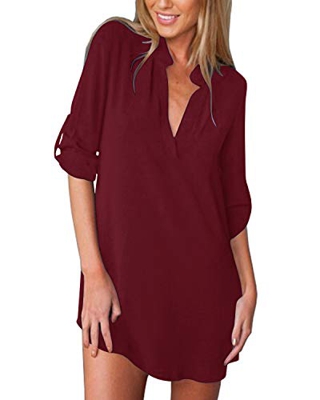[Características]: Cuello en V / Manga larga. Blusa de camisa de gran tamaño que si puede usar como un mini vestido para diferentes ocasiones, Cami...