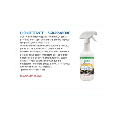 INFO PRODOTTO DISINFETTANTE SGRASSATORE HACCP SENZA PROFUMO ALIMENTARI TUTTE LE SUPERFICI COPYR disinfettante Sgrassatore HACCP ML 750 senza profumo …