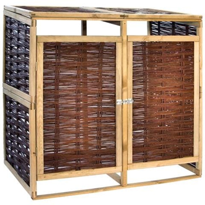 Copri Bidone Dei Rifiuti Doppio In Legno Di Pino E Vimini