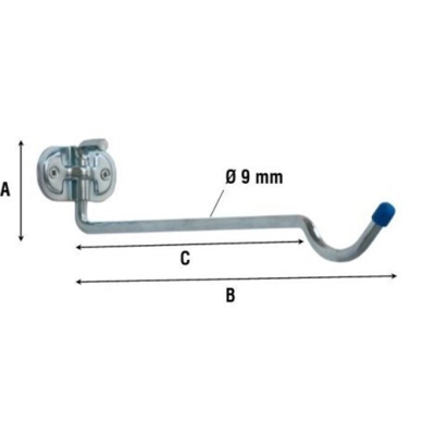 In acciaio zincato, asta Ø 9 mm. Con piastra per applicazione a parete.