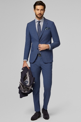 Abito in lana tecnica fil a fil, modello Anversa con costruzione "Wash & wear", rever a dente, 2 bottoni, tasche a pattina, spacchi laterali, vestibi…