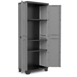 Keter armadio da assemblare da esterno Sistema in resina, 68x39x173 cm. tuttopiani. Colore grigio con 2 ante battenti e 3 ripiani (portata 15 kg. per ripiano). CARATTERISTICHE TECNICHE 2 ante, 3 ripiani regolabili - portata massima 15 kg. per ripiano Colore grigio scuro La speciale composizione in resina del prodotto gli permette di essere esposto alle intemperie e ai raggi uv senza deteriorarsi e scolorirsi. Impermeabile al 100% e il suo contenuto sarà sempre asciutto. Struttura molto robusta L'armadio alto Stilo è adatto ad organizzare spazi in ogni tipo di contesto Dotato di una maniglia ergonomica soft touch con predisposizione per il lucchetto Piedini rialzati regolabili per facilitare le pulizie Tempo di montaggio stimato 15 minuti Possibilità di fisaggio a muro Conforme alle norme di sicurezza EN14749 ; Antine con predisposizione per lucchetto Con sistema di bloccaggio sicuro dei ripiani e piedini frontali regolabili Dimensioni: Larghezza 68cm | Profondità 39cm | Altezza 173cm