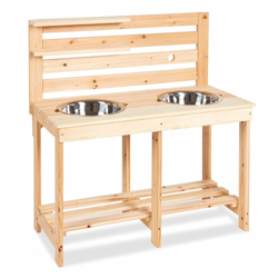 La cucina Paul della Pinolino è un ottimo modo per consentire ai più piccoli di giocare all'esterno con i propri amici! La cucina da giardino si compone di due lavandini in acciaio inossidabile e di un foro per il tubo da giardino nella parete posteriore, è realizzata in legno massello di abete non trattato. I piccoli secchi e gli altri piccoli attrezzi possono essere appesi tra le barre di legno del muro o posizionati nel vano inferiore. Grazie alla costruzione stabile, i bambini possono divertirsi senza problemi di sicurezza! Specificazioni: Colore: Naturale Materiale: Abete non trattato Dimensioni: 90 x 44 x 94 cm (L x P x A) Altezza del piano: 58 cm Con 2 lavandini in acciaio inossidabile (capacità: 3L) Passaggio per tubo da giardino nella parete posteriore Con "Matschküche" stampato Età consigliata: Fino a 3 anni SKU: 427762