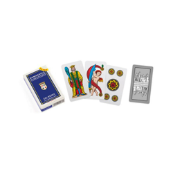 Carte da gioco Romagnole realizzate in cartoncino. Formato carte regionali mm 51x91, astuccio blu