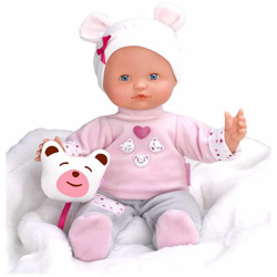 Bambola Nenuco interattiva dal corpo morbido. Grazie a dei sensori potrà esprimere 3 stati d'animo: felice, triste o arrabbiata. Più la coccolerai, più sarà felice e dirà che sei la miglior mamma del mondo, altrimenti sarà triste e arrabbiata. I suoi occhi si chiuderanno per dormire. Orsacchiotto incluso.
