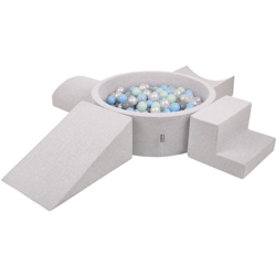 Parco giochi modulabile in schiuma per bambini con palline Questo set straordinario stimolerà l'immaginazione dei bambini e influenzerà il pensiero creativo. Un set giocattoli, composto da palline, una piscina ed elementi morbidi, può essere utilizzato per il gioco ordinario, l'esercizio o per costruire varie strutture. I blocchi in schiuma variano a seconda della scelta del set. Il materiale utilizzato per la produzione è caratterizzato da una bassa grammatura e un'elevata resistenza alla deformazione meccanica. Tutti gli elementi di perscorco morbido hanno una fodera rimovibile - è più facile di tener puliti tutti i elementi. Dettagli del set: Piscina 200/300 + Version 1 - montagna/tunnel/rampa/meta rullo Piscina 200/300 + Version 2 - cuneo/montagna/tunnel Piscina 200/300 + Version 3 - cuneo/montagna/tunnel/gradini Piscina 200/300 + Version 4 - cuneo/rampa/meta rullo Piscina 200/300 + Version 5 - cuneo/rampa/meta rullo/gradini I dettagli del prodotto- dimensioni: - piscina a