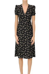 Printed silk midi dress, short sleeves, V-neckline, zip-fastening at side. Sample size: 0 US COMPOSITION: 100% Silk Dry clean