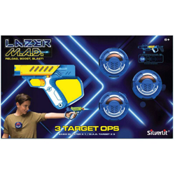 Entra nell'arena e sfida gli amici con Lazer Mad! La pistola è dotata di interruttore sonoro, grilletto con effetto speciale, effetti luminosi, altoparlante e selettore di squadra A/B. Inclusi 3 bersagli M.A.D. Spara colpi singoli fino a 15 metri di distanza. Uso indoor/outdoor e uso sia di giorno che di notte. Combinalo con gli altri accessori della linea Lazer Mad (venduti separatamente) per creare un super blaster capace di sparare fino a 50 metri di distanza. Requisiti batterie: 3 X AAA (non incluse) per la pistola e 3 X AAA (non incluse) per il bersaglio M.A.D. Adatto da +7 anni